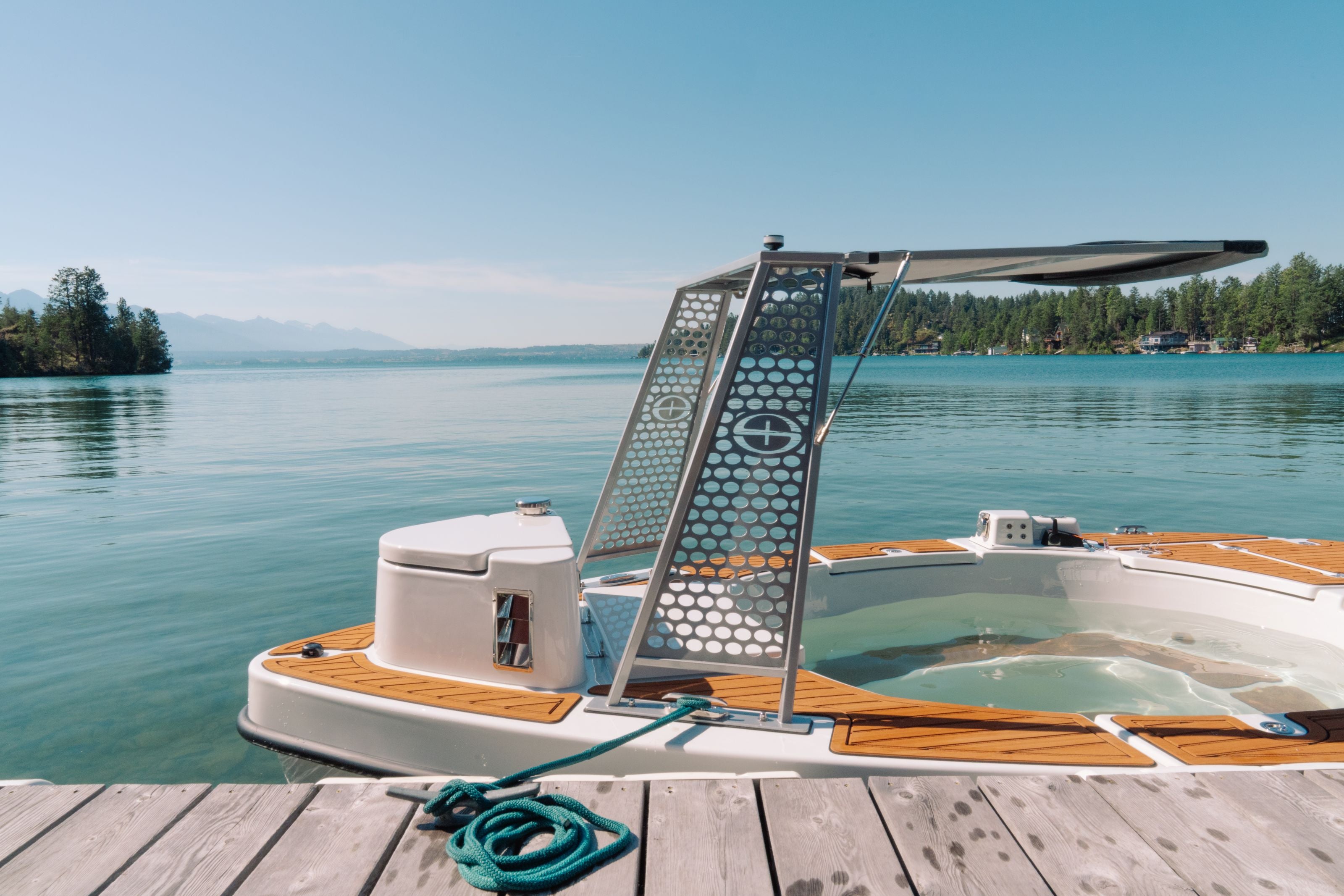 Unlike wood-burning hot tub boats, Spacruzzi's heater allows for perfectly regulated temperature.